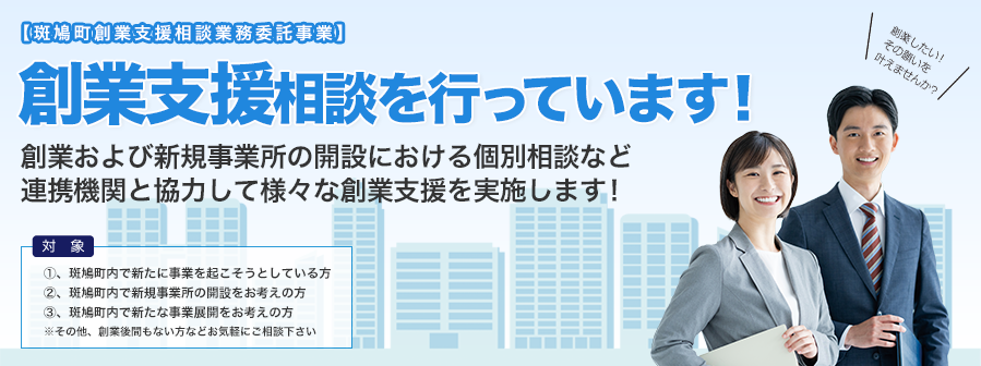 斑鳩町内で、新たに事業を起こそうと考えている方や、新たに事業所の開設をしようとお考えの方を対象に、創業支援員(中小企業診断士等の専門家等)が、事業計画書の作成支援や創業全般における相談を斑鳩町商工会館内および斑鳩町創業支援センター「ふらっぴん♪」内で実施します。