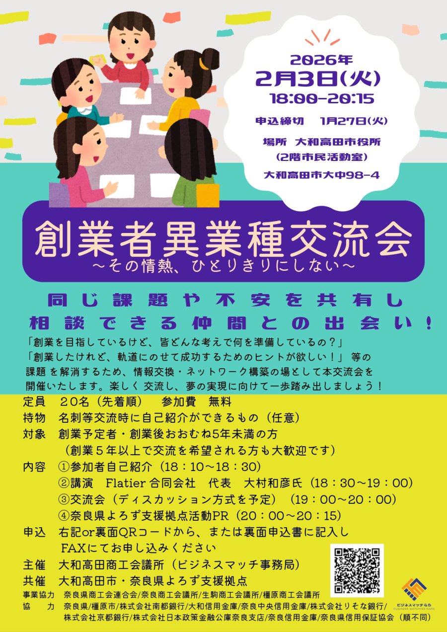 ビジネスマッチなら事業ではこの度、創業予定者及び創業後5年以内の事業者等を対象とした『創業者異業種交流会』を開催いたしますのでご案内いたします。